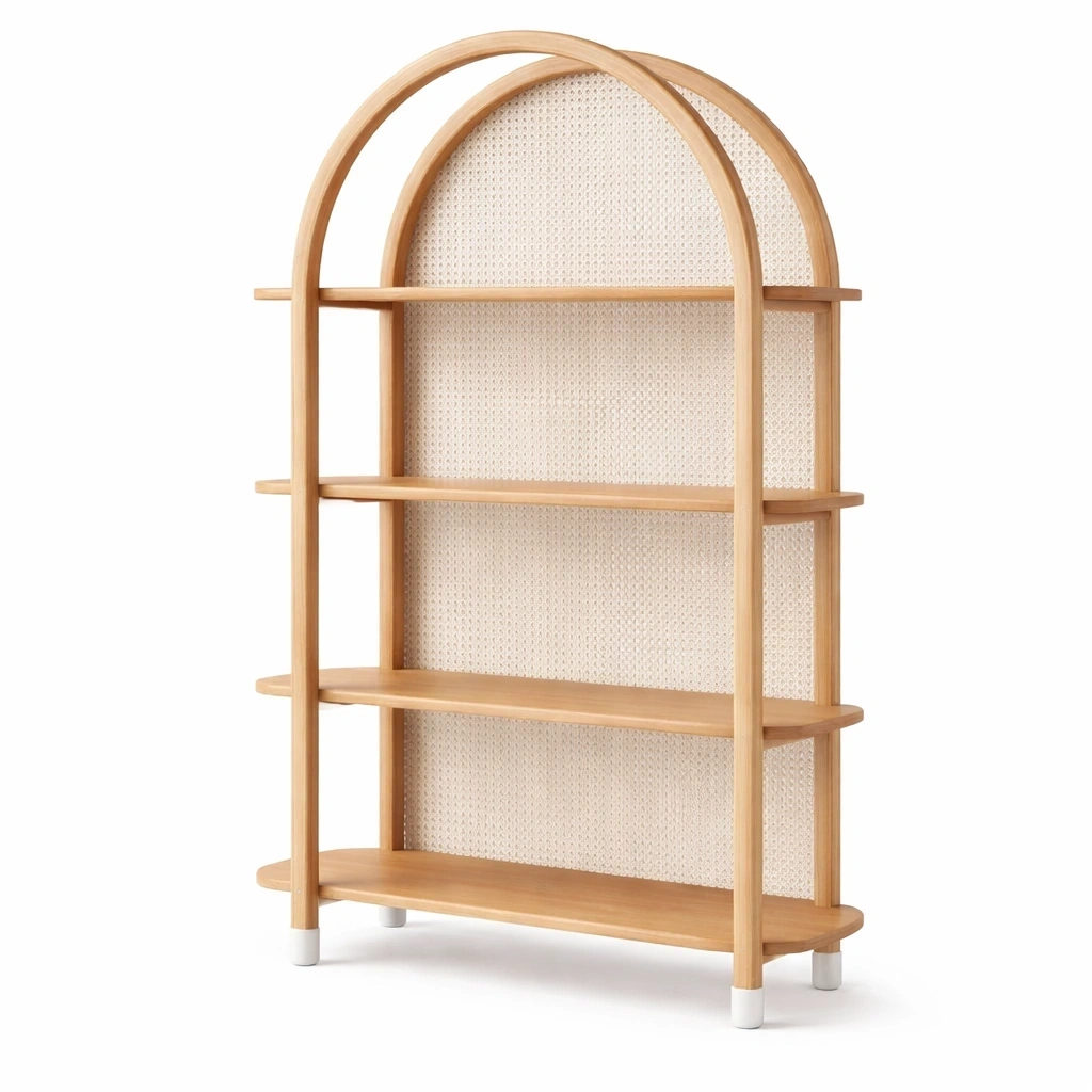 Description:This open arched shelving unit features a full height natural cane back panel for added visual depth.Solid wood shelves provide stable and spacious storage for books and decorative items.Designed with a relaxed and natural aesthetic to suit modern interiors.Ideal for use in living rooms and bedrooms.