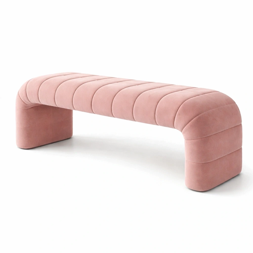 Description:This soft velvet bench features curved edges and a modern sculptural design.