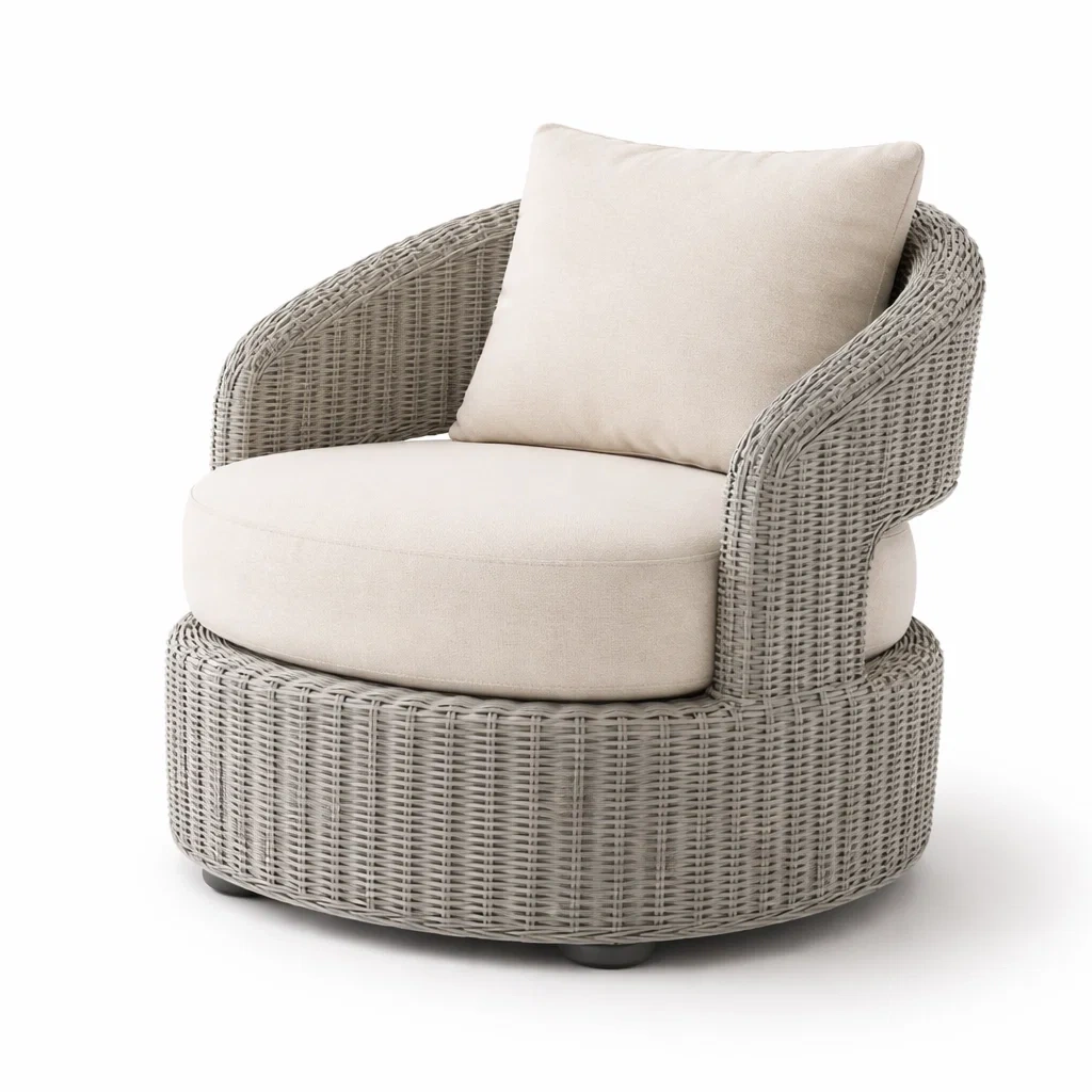 The neutral light grey tone blends easily with contemporary outdoor furniture collections.